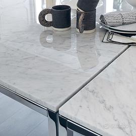 Il tavolino Florence Knoll, progettato per arredare i nuovi interni dell'America del dopoguerra, è una traduzione ridotta delle linee, dei gesti e dei materiali dell'architettura moderna. Coerentemente con tutti i suoi design, il tavolo ha una presenza geometrica di riserva che riflette l'approccio razionale al design che Florence Knoll ha appreso da Mies van der Rohe. Piano: piano d’appoggio in finitura marmo statuario 20mm. La finitura poliestere trasparente del piano in marmo protegge anche dalle macchie.