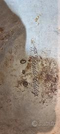 " P.Trenta Chilog." è una punzonatura che indica Jna bilancia,antica (spesso in ottone ), solitamente prodotta nel XIX secolo. 1l marchio, talvolta accompagnato da timbri annuali, indica una capacità massima di trenta chilogrammi (chilog) e si trova Su strumenti !P misurazione pesanti d'epoca, tra cui bilance a piatto prodotte da fabbriche italiane come quella di Mario Ostinelli di Como. G