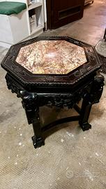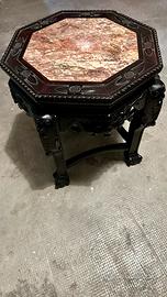 Tavolino originale cinese ottagone intagliato con marmo Larghezza cm 42 ( vedi foto)