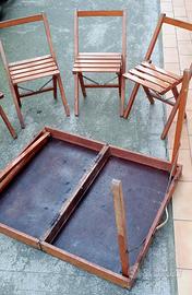 Vendo tavolino da picnic vintage,in legno con piano in formica, snodi gambe in metallo perfettamente funzionanti, angolari di rinforzo in metallo, sedie perfettamente funzionanti con snodi in metallo, solo a una manca una stecca sulla seduta come da foto.Non spedisco ,solo ritiro a Castelfranco