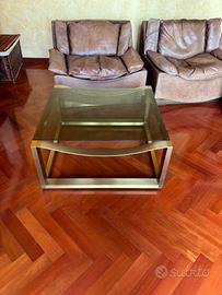 Tavolino salotto di Frigerio anni 70 in ottone e vetro fumè 90x90 cm. Ritiro e trasporto a carico acquirente.