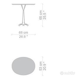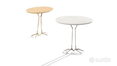 Traccia è un tavolino di Meret Oppenheim per il brand Simon by Cassina. Eccentrico e sfrontato, è una riproduzione dal modello surrealista, Table with bird legs del 1939, con modifica delle orme sul piano di un uccello fantastico.