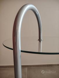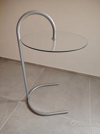 Tavolino laterale IKEA RY, progettato da Tord Björklund alla fine degli anni '80, questo modello è diventato un cult grazie alla sua somiglianza con il celebre tavolo E-1027 di Eileen Gray. Struttura in acciaio tubolare e piano circolare in vetro temperato. Ottime condizioni vintage. Il vetro è integro e la struttura è solida e ben conservata (segni del tempo minimi, come da foto). Altezza circa 70 cm Diametro piano circa 45 cm