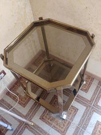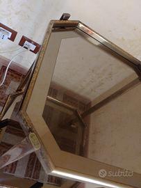 Tavolino Vintage In Ottone E Vetro Con Ruote