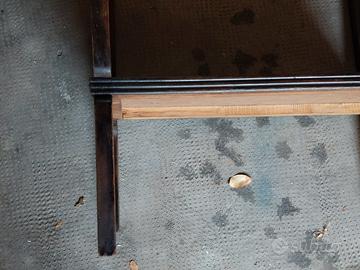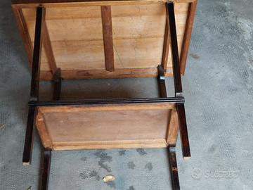 Tavolino vintage in legno gambe e ripiani color noce. Con rpiano intermedio. Dim piano alto cm 46 x 70 altezza totale cm 66 ripiano basso cm 31cx 50 altezza cm 21.