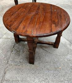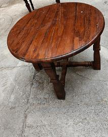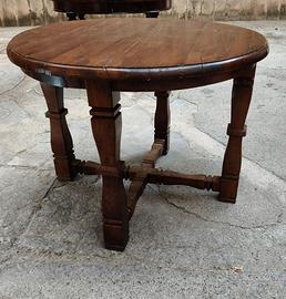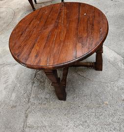 Vendo tavolo rotondo antico in legno massello, con struttura solida e gambe tornite.