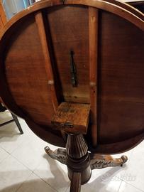 Antico tavolo intagliato , raffigurante i coniugi savoia , tavolo rotondo che si presta a vari ambianti , salotto studio camere … possibilita di reclinarlo in verticale per agevolare il trasporto … oggetto molto particolare adattabile a vari stili di arredo ,dal classico a moderno … per qualsiasi informazione scrivetemi pure …