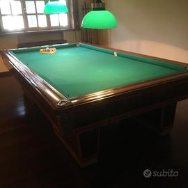 Tavolo da biliardo unico, NG Biliardi, ottimo stato, ardesia non riscaldata, completo di stecche, supporto stecche e palle, per appassionati o per circoli che apprezzano la rarità del pezzo del 1954. vendo anche lampade che però da foto si vedono poco ma tipiche da circolo biliardo.