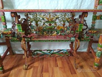 Causa trasloco (E quindi mancanza di spazio) vendo un bellissimo tavolo ricavato negli anni '80 da un antico carretto siciliano restaurato (Più precisamente dalla "Chiave del carretto" o "cassofuso") e restaurato dai fratelli Floridia di Comiso (Rg).