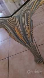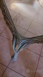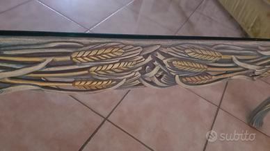 tavolo da salotto legno intagliato più ripiano di vetro temperato misura 130 x 130 x 45 cm ritiro sul posto