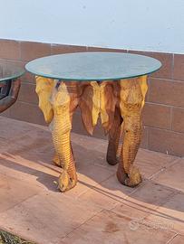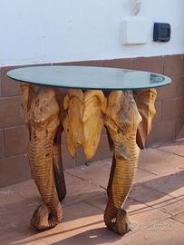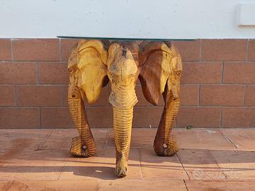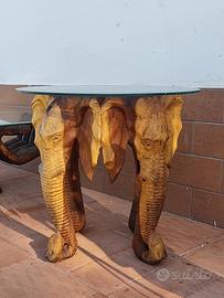 Tavolo elefante in legno di teak base vetro