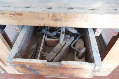 Vendo tavolo da falegname d'epoca ,4 morse in legno e filetto in legno originale mantenuto e non trattato.