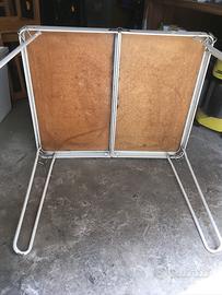 Tavolino in metallo pieghevole da gioco, credo anni 50/60, da restaurare. Come si vede in foto presenta parti rovinate.