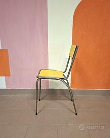 Delizioso set degli anni '60, in formica gialla , composto da tavolo con base in legno bianco e 4 sedie dal design atipico.