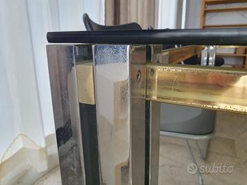 Vendo tavolo rettangolare in metallo cromato e cristallo fumé vintage anni '70. Articoli che ha circa 50 anni in buono stato presenta segni del tempo sulle parti metalliche come si vedi in foto.