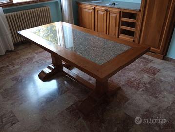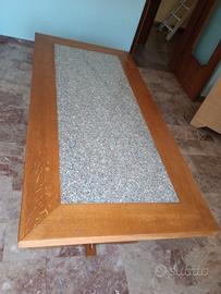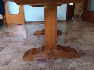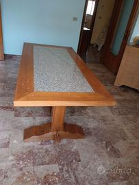 Tavolo Fratino con Gambone ad "Asso di Coppe", tutto in legno di Rovere Massiccio con Piano in Marmo in ottime condizioni come da fotografie molto bello comodo e pratico