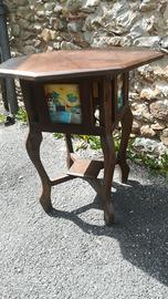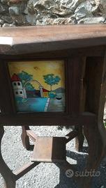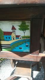 Tavolo in tek prestigioso e particolare con 4 inserti in vetro pitturati a mano. Per ulteriori informazioni e fotografie, rivolgersi al contatto sotto indicato, facendo riferimento a questa inserzione TV6.