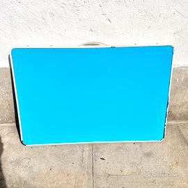 Divertente tavolo pieghevole da picnic o da camper vintage. Originale degli anni “70 in buono stato con il colore azzurro ancora brillante dell’epoca.