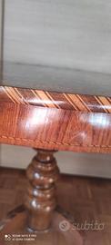 Tavolo antico intarsiato Tavolino Rolo/Sorrentino originale di epoca metà 1800 in legno intarsiato, con basamento centrale che termina con tre piedi. Dimensioni adatte a vari utilizzi (gioco, tè, appoggio,..) - diametro 89cm - altezza 74 cm In noce massello + intarsi di vari legni. Buono stato di conservazione. Motivi decorativi geometrici ben proporzionati. Può essere ritirato in zona. Può anche essere consegnato da me in zone non troppo distanti. Disponibile per ulteriori informazioni o fotografie.
