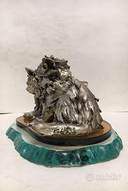 Coppia di gattini in edizione limitata, la base è realizzata in cristallo scalpellato ed una ulteriore lastra di vetro color ocra.