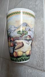 Tazza con manico, in ceramica smaltata con disegni brillanti particolari, altezza 15cm, diametro 9cm, può essere utilizzata per tisane o altro. Nuova mai usata. Prezzo €10. Contattare tramite subito o via sms whatsapp il 3248986120.