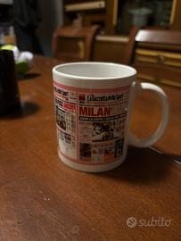 Tazza celebrativa dedicata all'AC Milan, con grafica ispirata a La Gazzetta dello Sport.