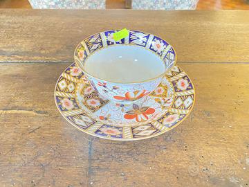 Vendo tazza da té e piattino in porcellana policroma, Manifattura ROYAL CROWN DERBY, Regno Unito 1915-50