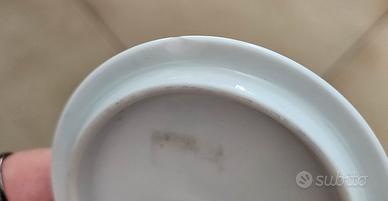L'oggetto è in ottime condizioni generali e i colori sono vividi. Si segnala una piccola sbeccatura sul bordo del coperchio (visibile nelle ultime foto), che non ne pregiudica l'estetica generale ma di cui si è tenuto conto nel prezzo
