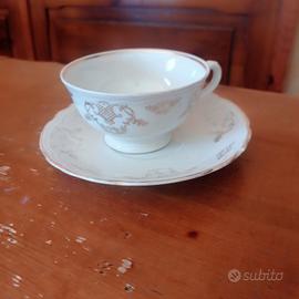 tazza da thè Richard Ginori con bordo oro zecchino e leggera scheggiatura sul piattino evidenziato