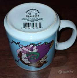 Decorazione su fondo azzurro con Belle e la Bestia, colori vivaci e stampa ben conservata. Oggetto vintage anni ’90, ideale per collezionisti Disney o come tazza da uso quotidiano.