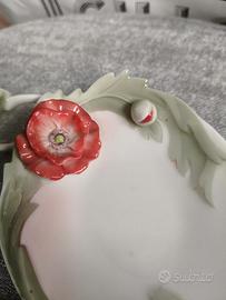 Raffinata porcellana con cui sono stati creati, con incredibile maestria artigianale, questa tazzina ed il relativo piattino deciderai con graziosi fuori di papavero.