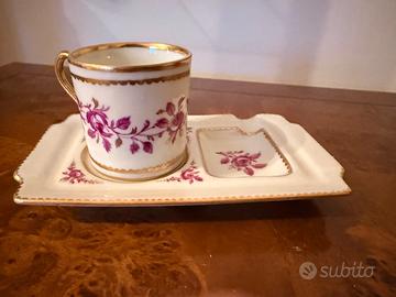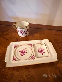 Raro vassoio con tazzina Meissen "Pink Indian", raffinato set in porcellana originale della prestigiosa casa tedesca con posacenere.