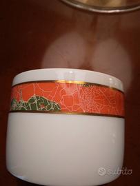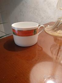 Tazza Richard Ginori in finissima porcellana disegno sui toni dell' arancione con profilo dorato. Made in Italy. Meraviglia