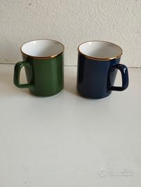 Set di 2 tazze da caffè - the Tams Made in England, un design di colore bleu e verde con bordo dorato vintage anni 80
