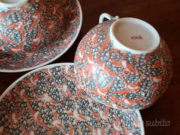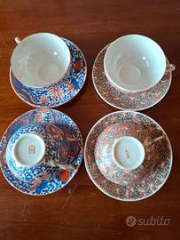Set di 4 tazze da thè in finissima porcellana cinese in due fantasie, da collezione, vintage, modernariato, antiquariato
