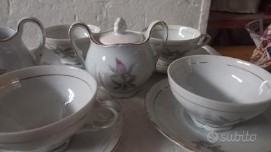 TAZZE DA THE 6 TAZZE PIÙ 6 PIATTINI ZUCCHERIERA E LATTIERA TUTTO IL LOTTO EURO 42 .