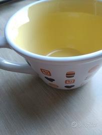 Tazza grande gadget Nutella anni 70 con decoro serigrafia colorata pesciolini blu, nuova e perfetta mai usata, misure diametro cm.10x8 h., vendo a 4 euro.