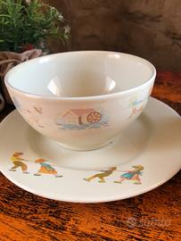 Coppia di tazze Richard Ginori per Mulino Bianco serie Girotondo Tiro alla fune con piattini - da collezione Sono in ottime condizioni