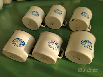 R Lotto di 6 tazze smaltate fattorie pandea, originali, Piccoli segni di usura, posso spedire.