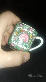 elegante tazzina da collezione in porcellana bone china, con un raffinato decoro floreale. perfetta per collezionisti o amanti del vintage. demitasse e saucer in fine porcellana bone china. 100% autentica. lavorazione artigianale. dipinta a mano. ottime condizioni.