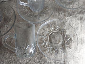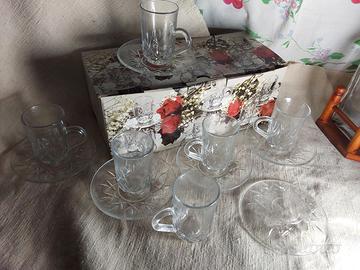 vendo 6 tazzine caffè h.7,5cm. diametro 5 cm. con 6 piattini in cristallo molato ,diametro 11 cm. "SERVIZIO ORIENTHE'" di Borgonovo