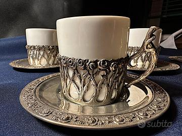 tazzine da caffe in argento 800 e ceramica