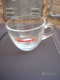 6 TAZZINE DA CAFFE' IN VETRO MARCATE ROMACAFFE COMPLETI DEI LORO PIATTINI IN OTTIME CONDIZIONI.