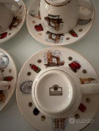 Vendo eleganti tazzine da caffè con piattino, acquistate a Londra in una boutique di artigiani locali specializzati in ceramiche fatte a mano.