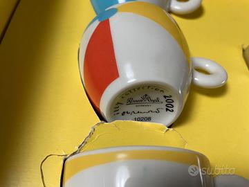 Set tazzine illy Art Collection 2002 – Marina Abramović, composto da 6 tazzine espresso con piattini originali Rosenthal. Design artistico molto particolare, con colori vivaci e linee pulite tipiche delle collezioni illy. Ogni tazzina è diversa e firmata sotto. Le condizioni sono ottime, senza crepe o difetti. Presente anche la scatola originale illy (con normali segni del tempo). NO LATTA DI CAFFE