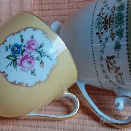 Spode England , decoro "Summer Palace" bordo cm 8.5 altezza cm 6 // Furstenberg "Fürstin 654 Medaillon" bordo cm 6 altezza cm 6 // Tirschenreuth serie "Trianon Florenz" anni 60 bordo cm 8 altezza cm 7 // . Porcellana finissima e decori accurati .Come nuove Vedi foto