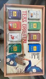 Vendo bellissima collezione composta da oltre 40 scatole da tè vintage originali, in latta e legno, provenienti da tutto il mondo (UK, Sri Lanka, Canada, ecc.).