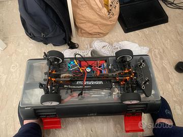 Vendo TeamC TC10 1 10 per passaggio ad altro modello. L'auto si presenta full optional con barre antirollio anteriori e posteriori, strappo per batteria lipo, supporti in carbonio e molto altro. Sono stati fatti da poco ammortizzatori con olio 400 CST , cuscinetti dei mozzi e inoltre monta braccetti xray. Vendo SOLO telaio e servo, escludendo motore regolatore e radio. Il servo è un 0,08 14kg e cedo 2 treni di gomme. L'auto può montare tutti i ricambi xray ed è un ottimo compromesso per iniziare con un telaio da competizione.