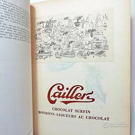Pubblicità di KLM a colori su copertina posteriore e pubblicità CHOCOLAT CAILLER con etichetta illustrata applicata.