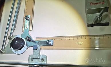 Tecnigrafo portatile marca Tecnostyl 620, buone condizioni perfettamente funzionante, con squadre di 15 cm. e 20 cm. completo di piano di lavoro formato A3 orientabile in legno e di valigetta originale con foglio d’istruzioni d'uso.